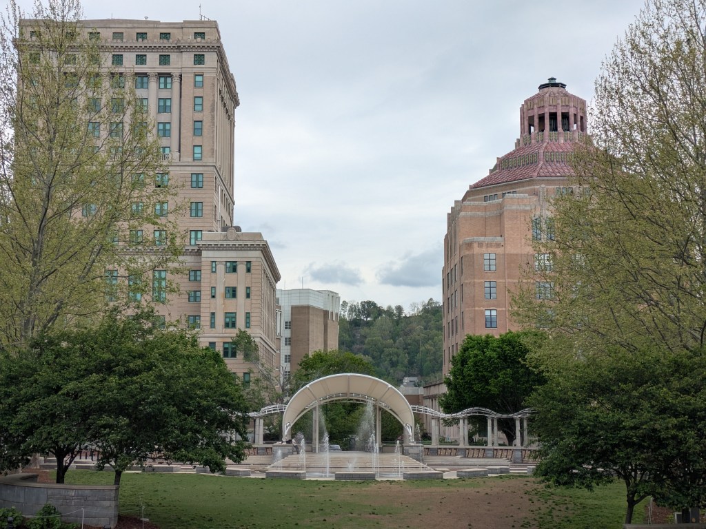 After all the walking around, I was happy to come across the wide open expanse of the Pack Square Park. Separating the court house and city hall from the main streets of the city is a large lawn with a covered stage to bring entertainment to the city, water fountains to cool off in the summer heat, and Adirondack chairs and benches to take a well needed break.