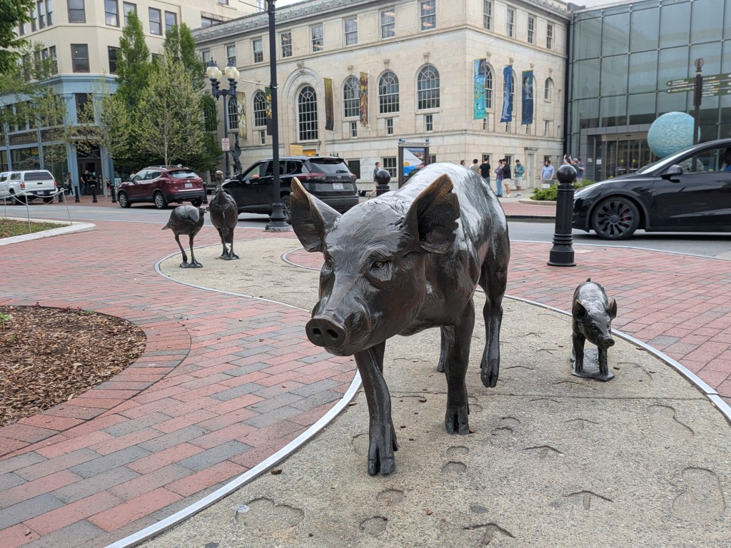 Asheville embraces and honors its history through its architecture and art. The Asheville Urban Trail brings people through the city with 30 sculptures and informational plaques that work together to talk about the history of the trade routes, commerce, people, culture, and inventions in the city.