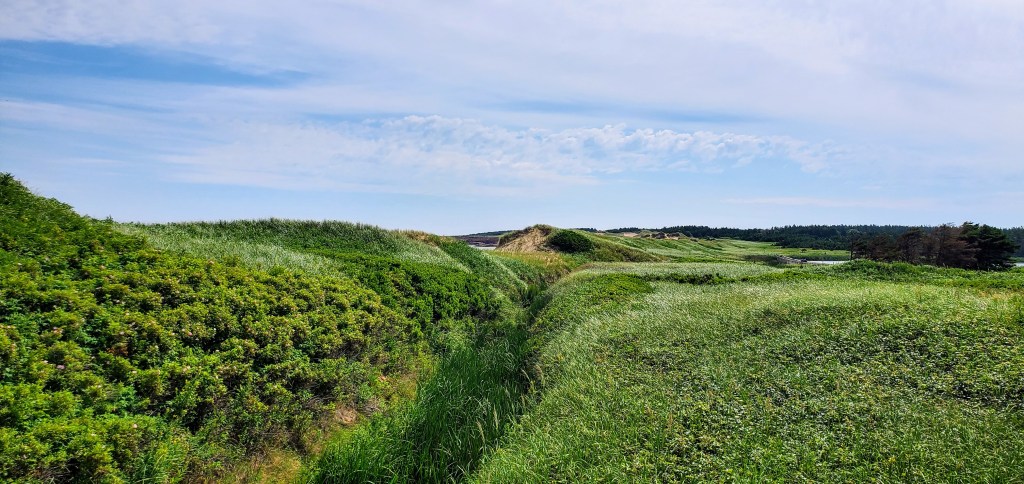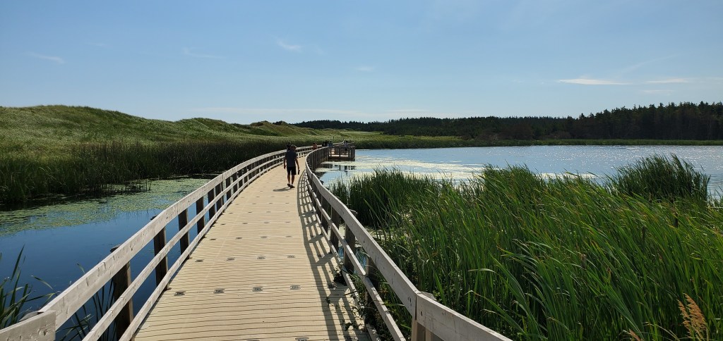 The Cavendish Dunelands trail within Prince Edward Island National Park is a perfect way to enjoy the beauty of the landscape. The trail starts with a boardwalk through the marshlands where flowers and grasses color the edges of a freshwater pond, aptly nicknamed “The Lake of Shining Waters”.