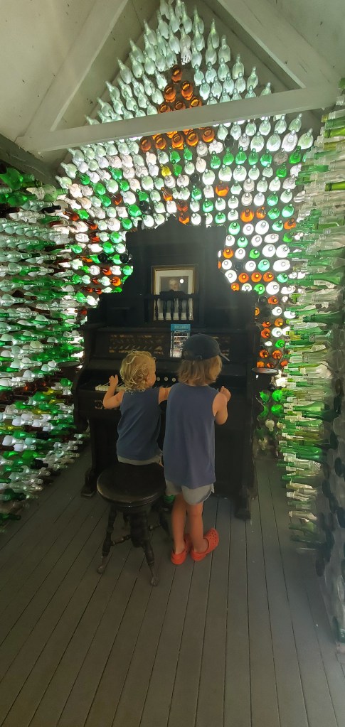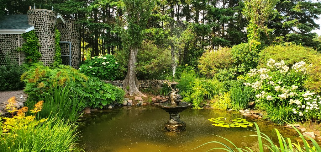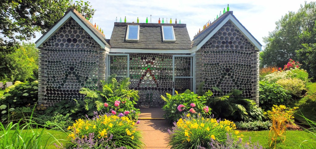 While Anne of Green Gables was a staple of my childhood, my nephews had read about the Bottle House in one of their books so were excited to see it for themselves. Edouard T. Arsenault constructed three bottle houses from over 25,000 recycled glass bottles between 1980 and 1984. He was inspired by a glass house his daughter had visited on Vancouver Island. Arsenault used the colors of the bottles to create designs within the walls, so the filtered light changes from room to room. The third building, the chapel, even has an altar created from bottles. Besides the houses, the grounds offer lovely gardenscapes with a small pond, fairy houses, art installations, and a small lighthouse.