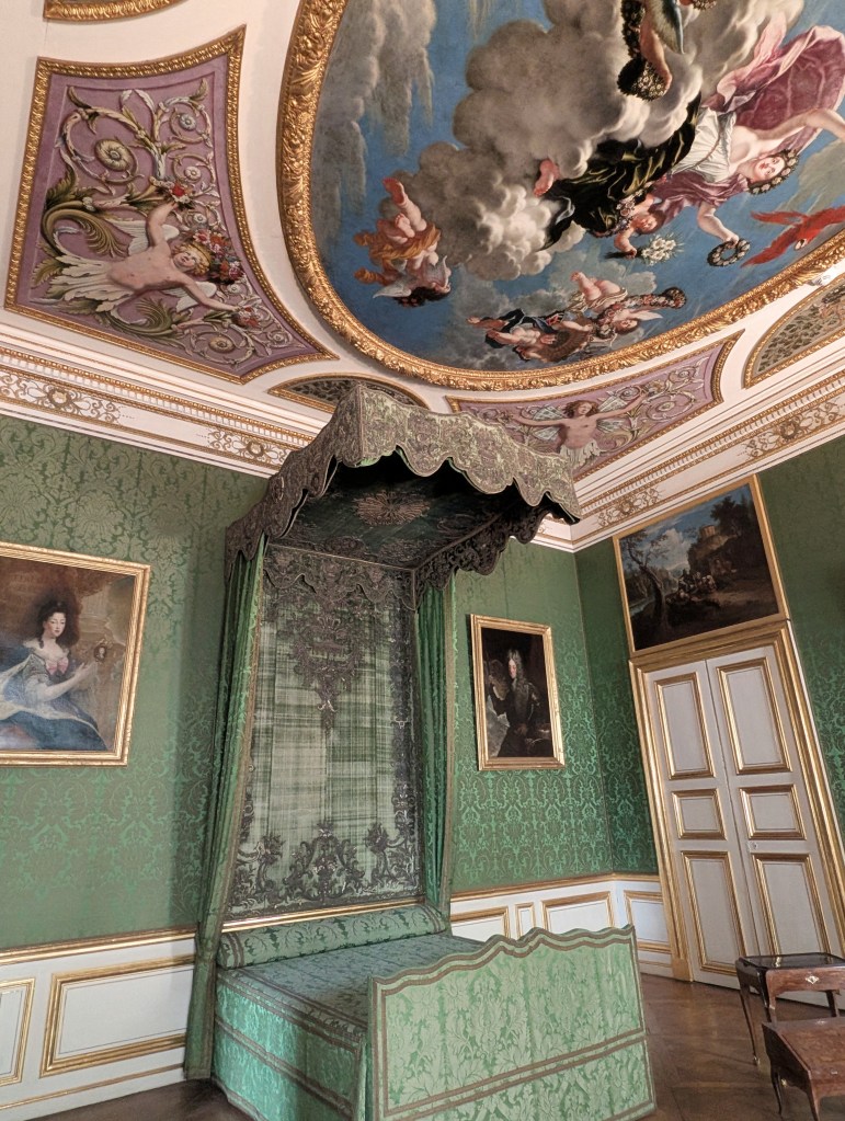 On either side of the grand hall were a series of about 5 rooms connecting to a side hallway. Each room was decorated in a different color with painted ceiling murals, large portraits on the walls, and information about the family that occupied this space.