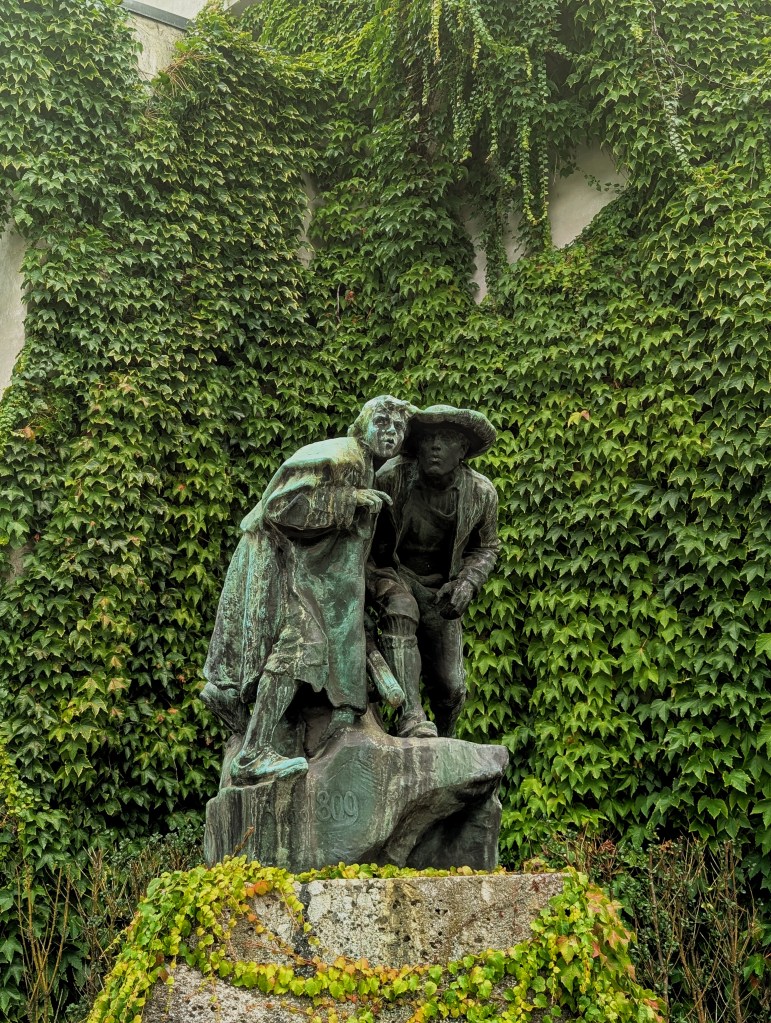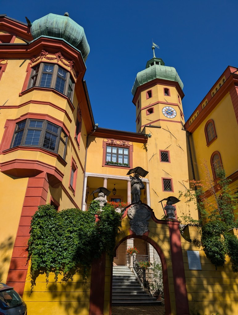 I crossed the river and walked along the river taking myself wherever my eyes and feet decided to go. I started with a small church and then wandered up the hill to the historic yellow facade of the Schloss Buchsenhausen. Once the foundry for the Loffler family who cast bells and cannons, it then became the site of the city’s first brewery in 1642, and the first outdoor swimming pool in 1852. Today, it serves as an artist residence and function hall. While the interior is private, I enjoyed taking in the architectural details from the outside.