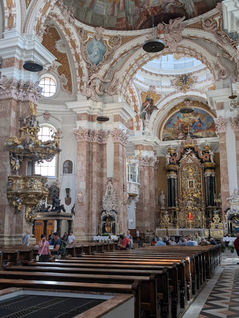 Off the main plaza are a series of small alleyways filled with tourist shops and local wares. I spent a fair amount of time wandering around these and letting myself get a little lost in the process. In my wanderings, I came across the St. Jakob’s Cathedral with its 18th century baroque interior and its iconic Tyrol bells whose sounds resonate throughout the city during the noon ringing of the bells.
