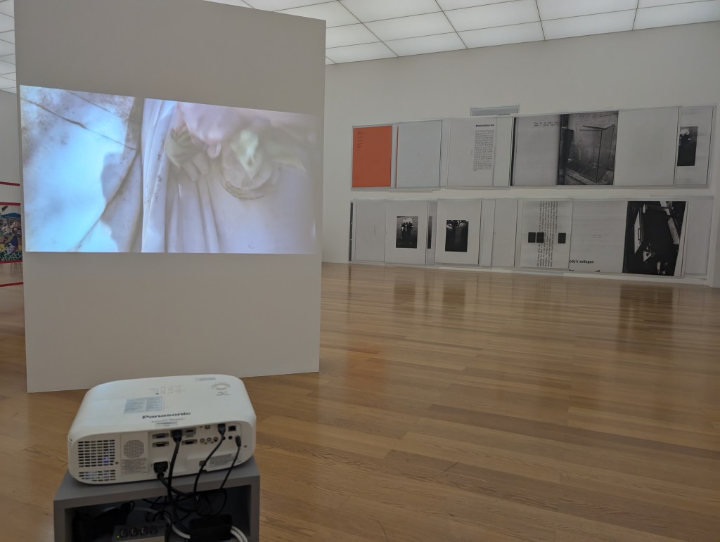 On this day the three museums in the city are also open and free. I first visited the Kunstmuseum. This modern and contemporary art museum featured video, photography, sculptures, and multi-media exhibitions. Each room offered programs in various languages, and one installation even offered free post cards. The rooms were large and bright, and the art asked for participation.