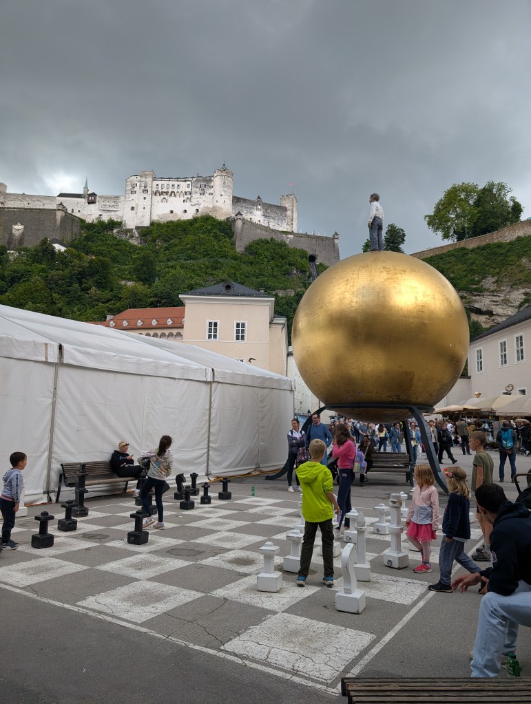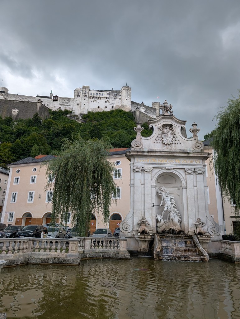 Across the river are the Mirabell Palace and Gardens. Here is one of the iconic Sound of Music sights, so I wasn’t surprised to find people posing on the steps, bringing music and pretending to play the violin or just geeking out in general. The bright colors of the flowers, central fountains, and large sculptures all set against the backdrop of the Cathedral and Fortress make this a worthy sight in itself.