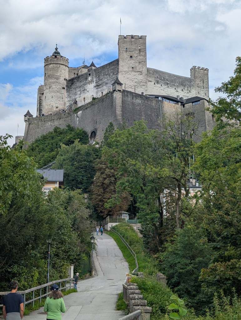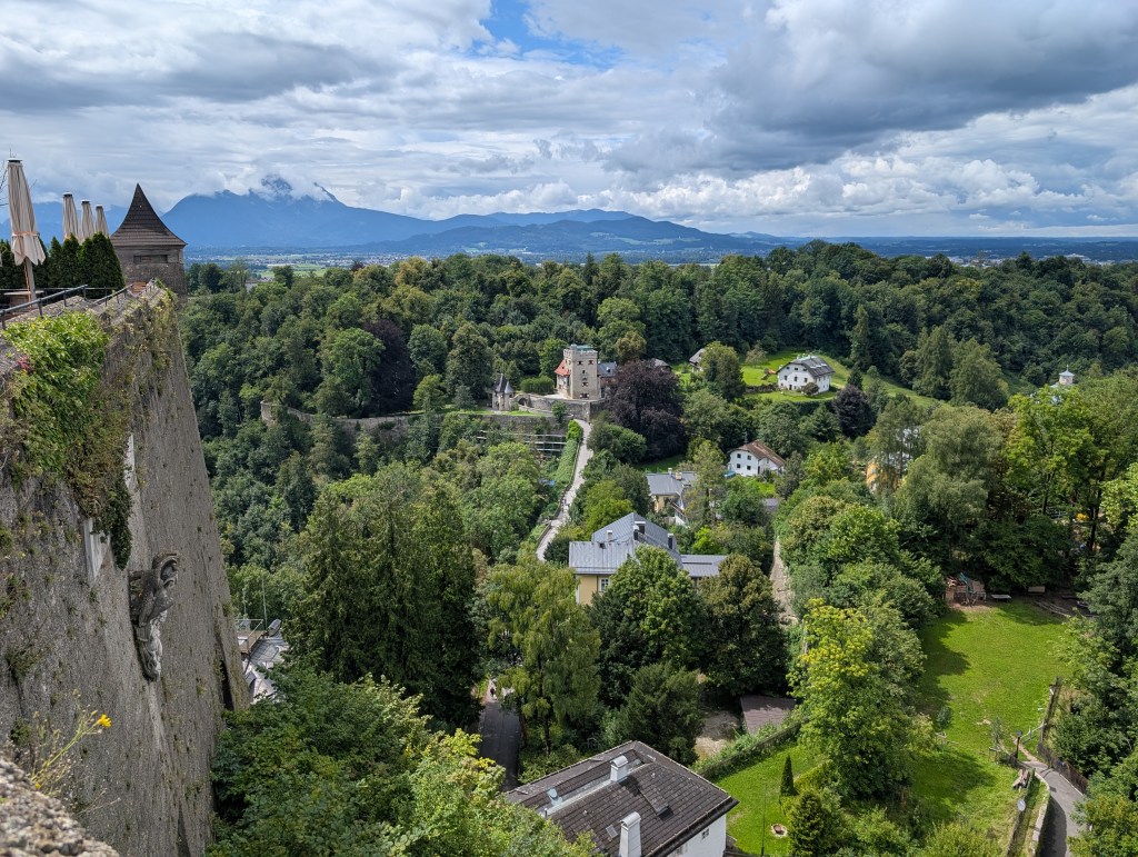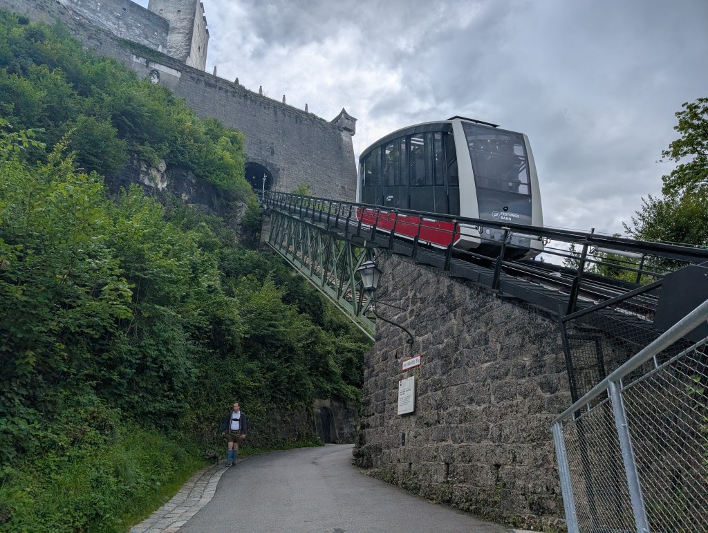 Just next to St. Peter’s Abbey is the funicular to Fortress Hohensalzburg. The funicular is more of a convenient ride up to the top than a scenic experience, but it’s also fun to zip up the side of a mountain. The funicular ticket is combined with the fortress ticket, so you arrive inside the fortress walls when you disembark from the car. The fortress offers a small museum which features the Venetian salt trade in the area, the political history of the city, and folklore stories, and a view of Salzburg Bull (a barrel organ which has rung over the city for over 500 years). At the top of the fortress is also a small observation deck to take in the surrounding mountains and city below.