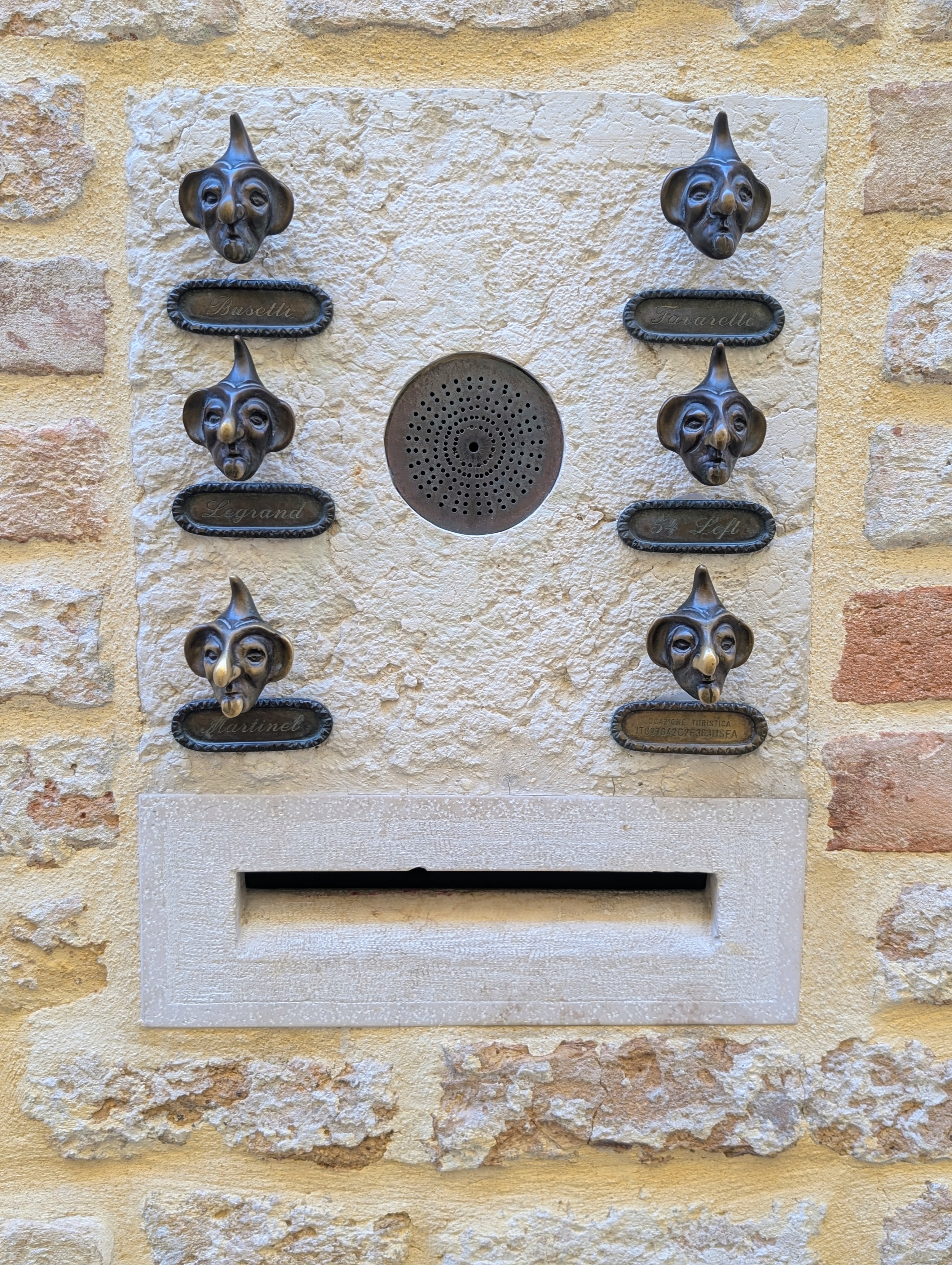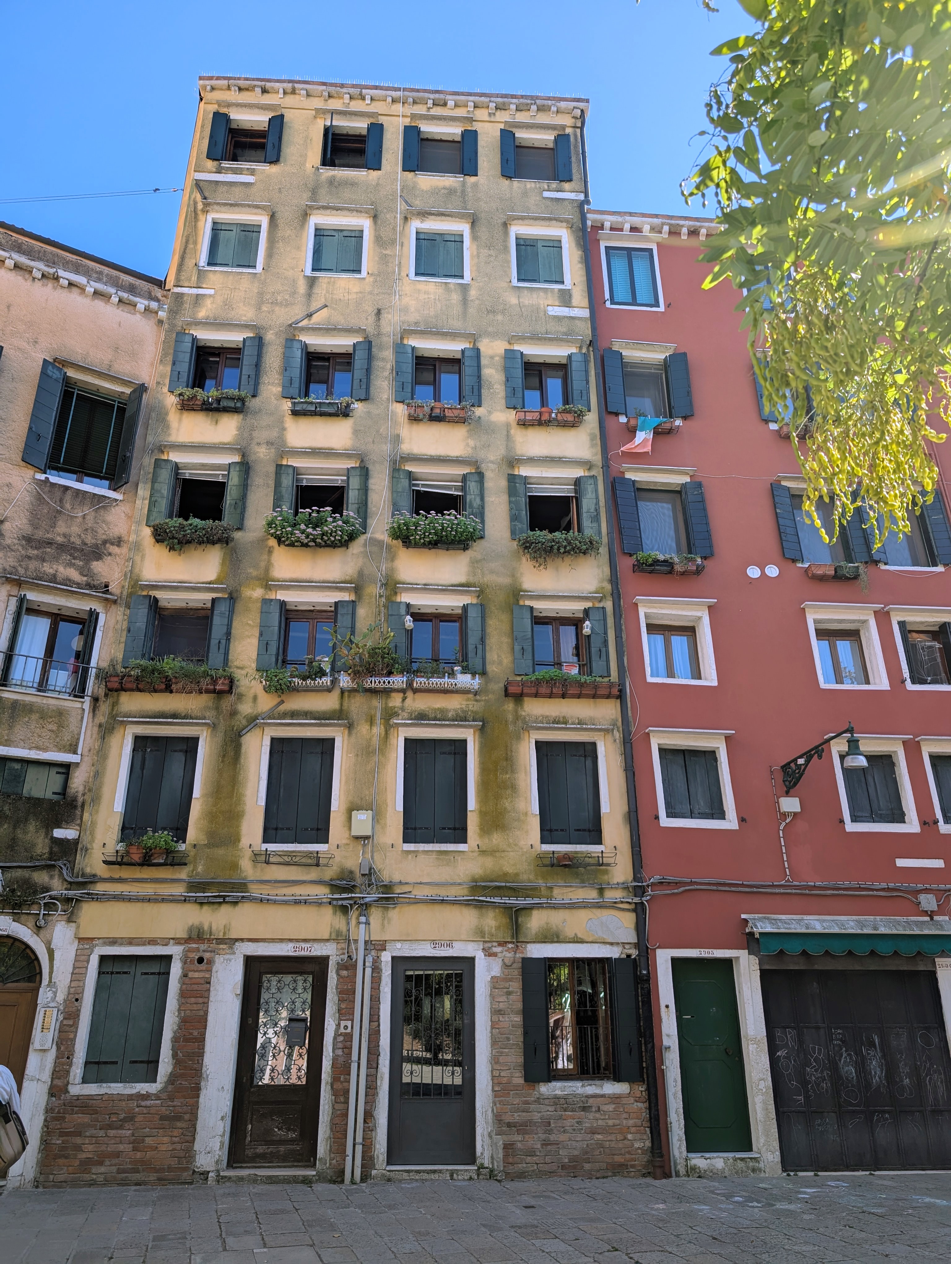 If you want to know my advice on what to do in Venice, my number one answer will be, get lost. Just wander. I am someone who doesn’t do well with crowds, so when I was in the heart of the tourist part of Venice, I was pretty frustrated – one glass shop after another, people stopping randomly in the too narrow streets, sellers trying to get you to take a rose, bracelet, etc. But, once I wandered away from this small area of the city, I found the heart of Venice. Palazzos, al fresco dining, public water fountains, bridges, sculptural reliefs in the stone walls, small artisan shops, arched entries, inventive door bells/knobs, churches, plant covered window boxes, people standing around drinking wine/coffee/spritzes.