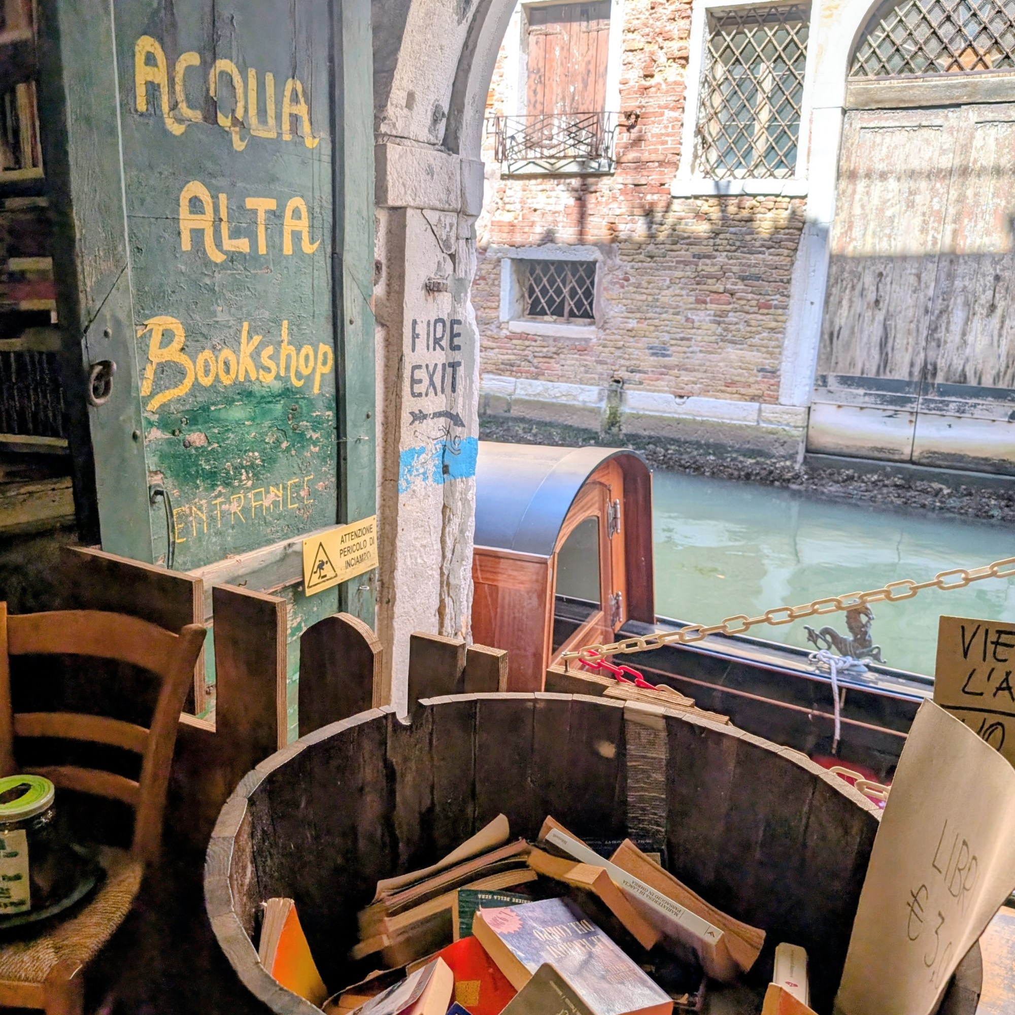 Since Venice is a city confined by water, it has also had to deal with the rising water issues. This means that sometimes buildings flood. Local bookstore Acqua Alta Bookstore hasn’t just thrown those book casualties out, but has made them a feature in their store. There’s a staircase made out of waterlogged books leading up to a view of the neighboring canal and a wall of them on the way out. They also use boats as shelf and design features throughout their store.