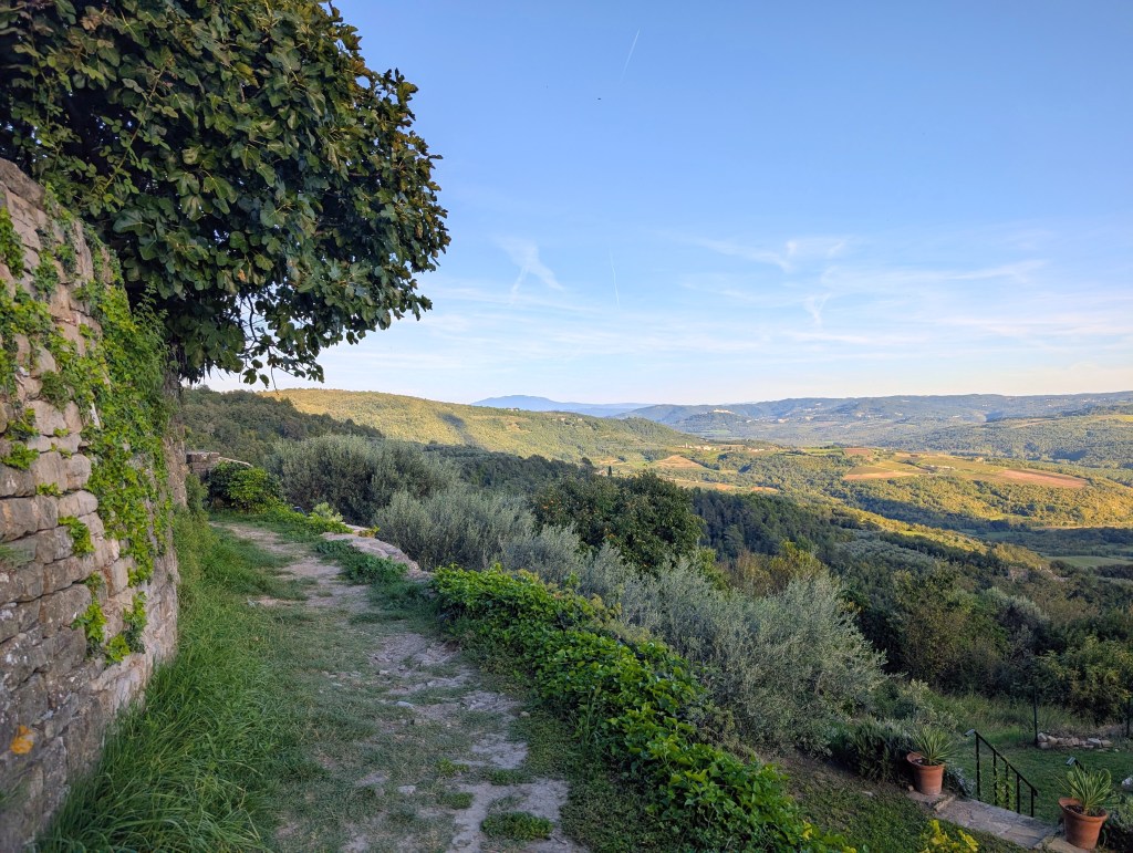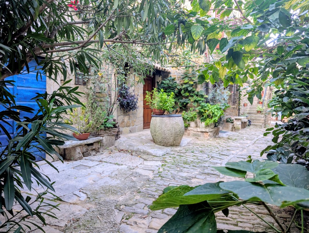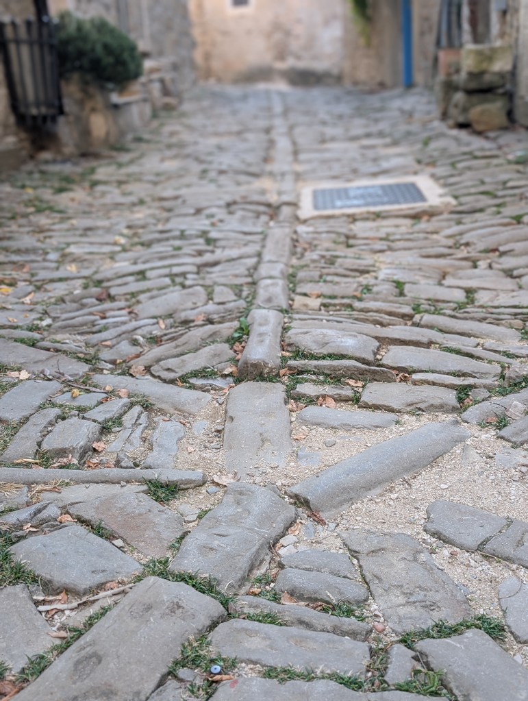 The next morning, I set out for a walk around the town, and quickly got lost in the labyrinth of ankle spraining cobblestone streets (seriously, I’ve never experienced such an uneven, treacherous walking surface) where I found neighborhood cats lounging around, artisan shops setting up for the day, historic plaques explaining the cultural and religious significance of the town, and stone courtyards framed by lush greenery. I found my way to a bar for breakfast looking out over the vineyards as the morning fog covered the valley floor.