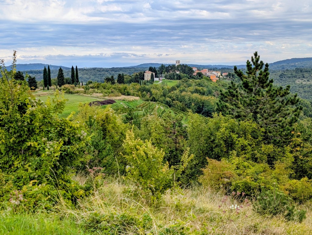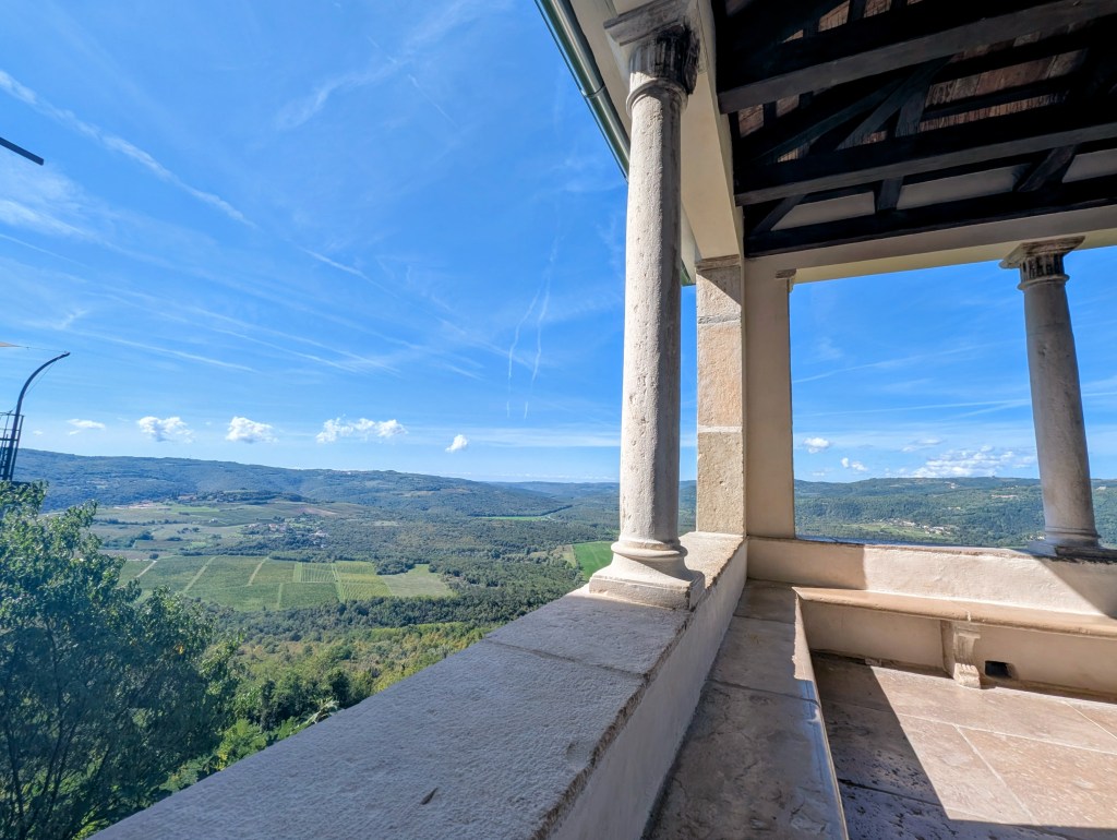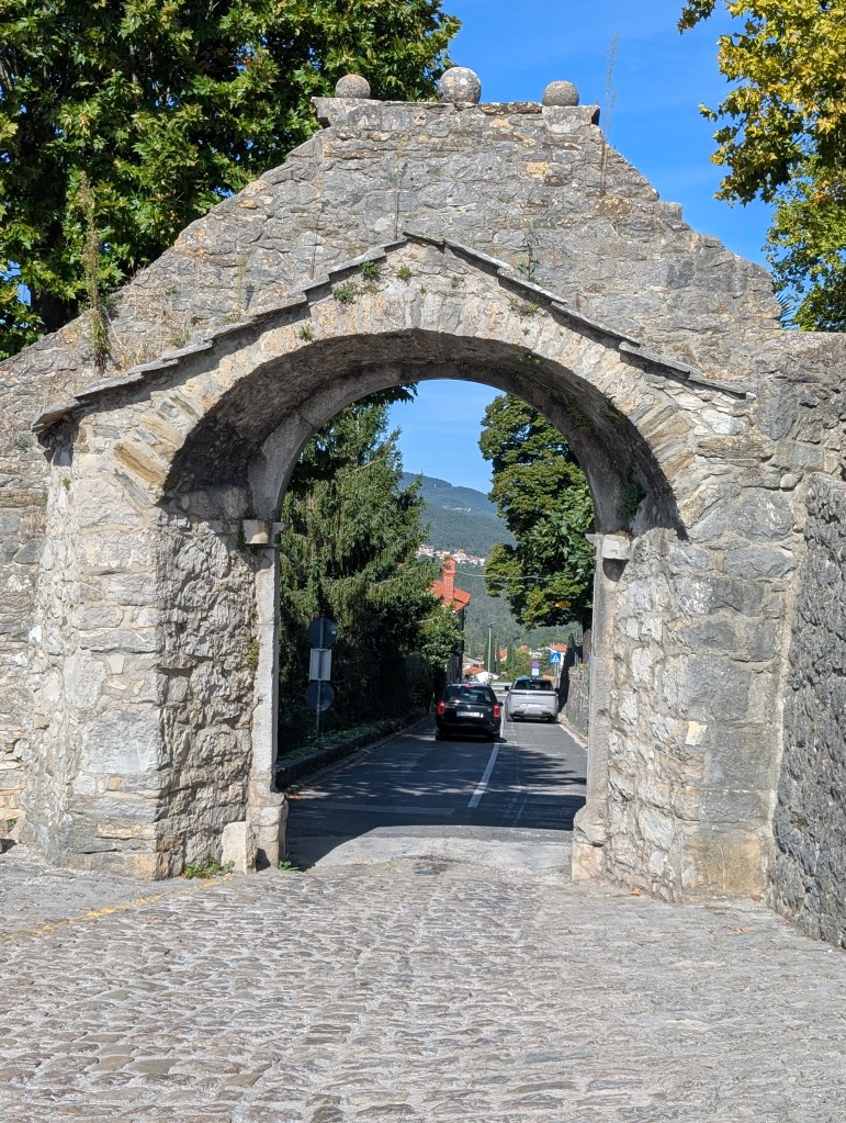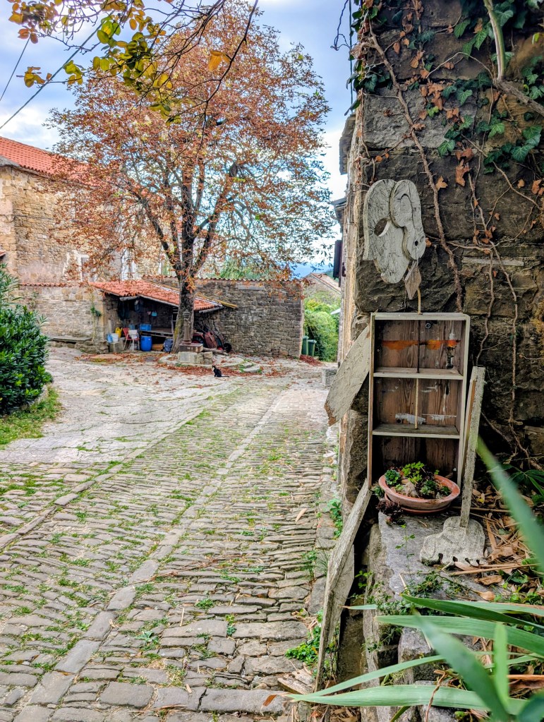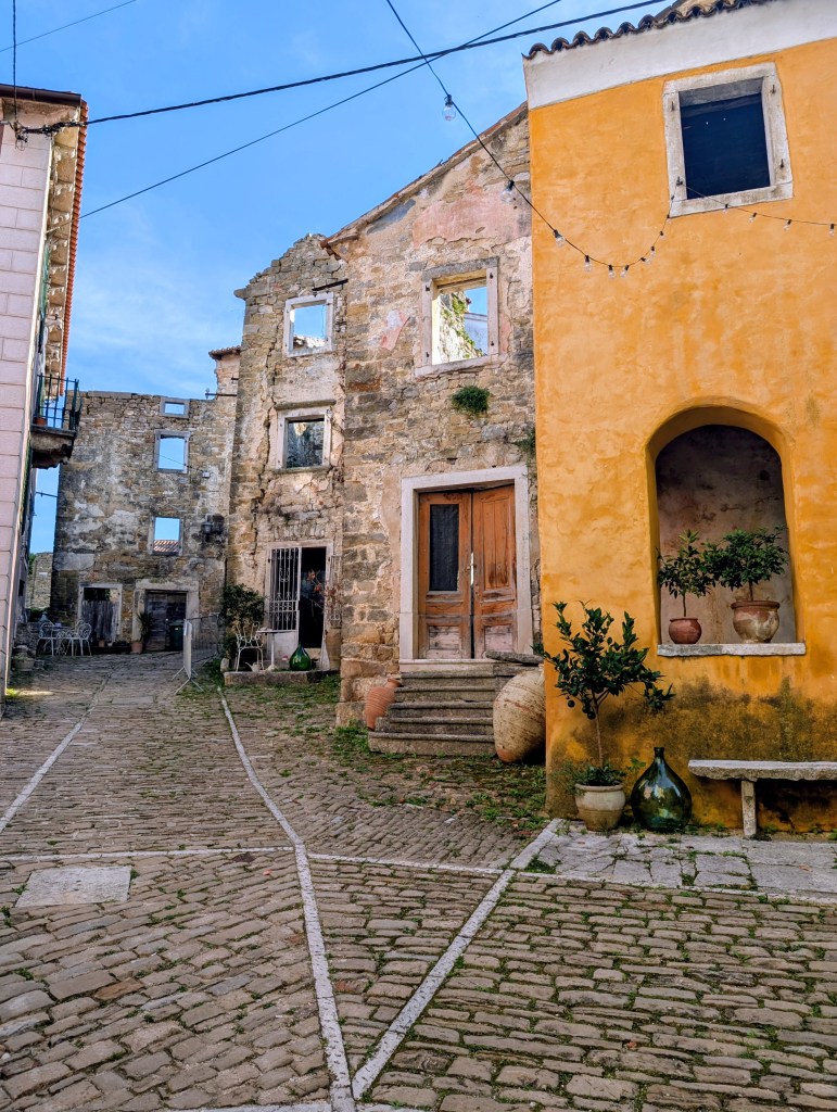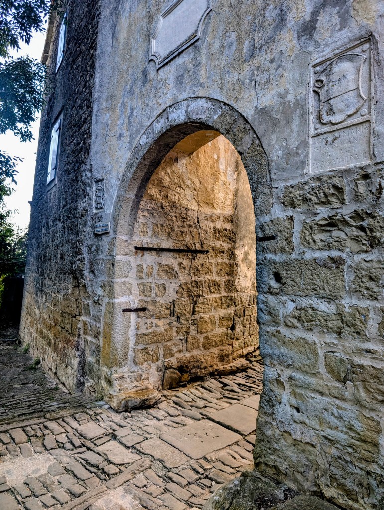 Sitting 378 meters above the sea level, Oprtalj offers beautiful views of the Mirna valley. A series of cypress trees leads the way up the hill to the main town where a three arched building frames the valley on the right and the city gate welcomes you into the cobblestone streets of the town on the left. I found this to be the most rustic of the hill towns, but that’s also the reason that I really loved walking around and appreciating the history of the town. The town also seems to embrace history as there are several antique shops to visit.