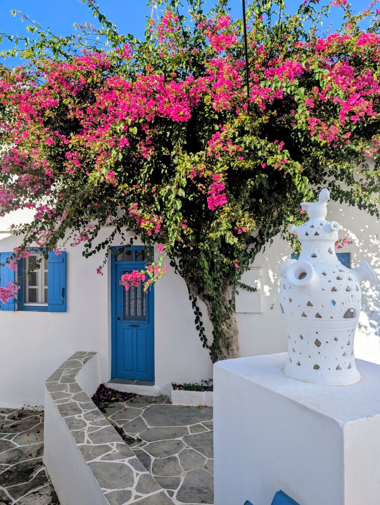 Artemonas is known as the artisan center of Sifnos, so I was hoping that some stores would be open by the time I arrived there, but sadly they were not (whether this is because of the time of day or the time of year). So, I continued to enjoy the vibrant contrast between the whitewashed houses and colorful bougainvillea.