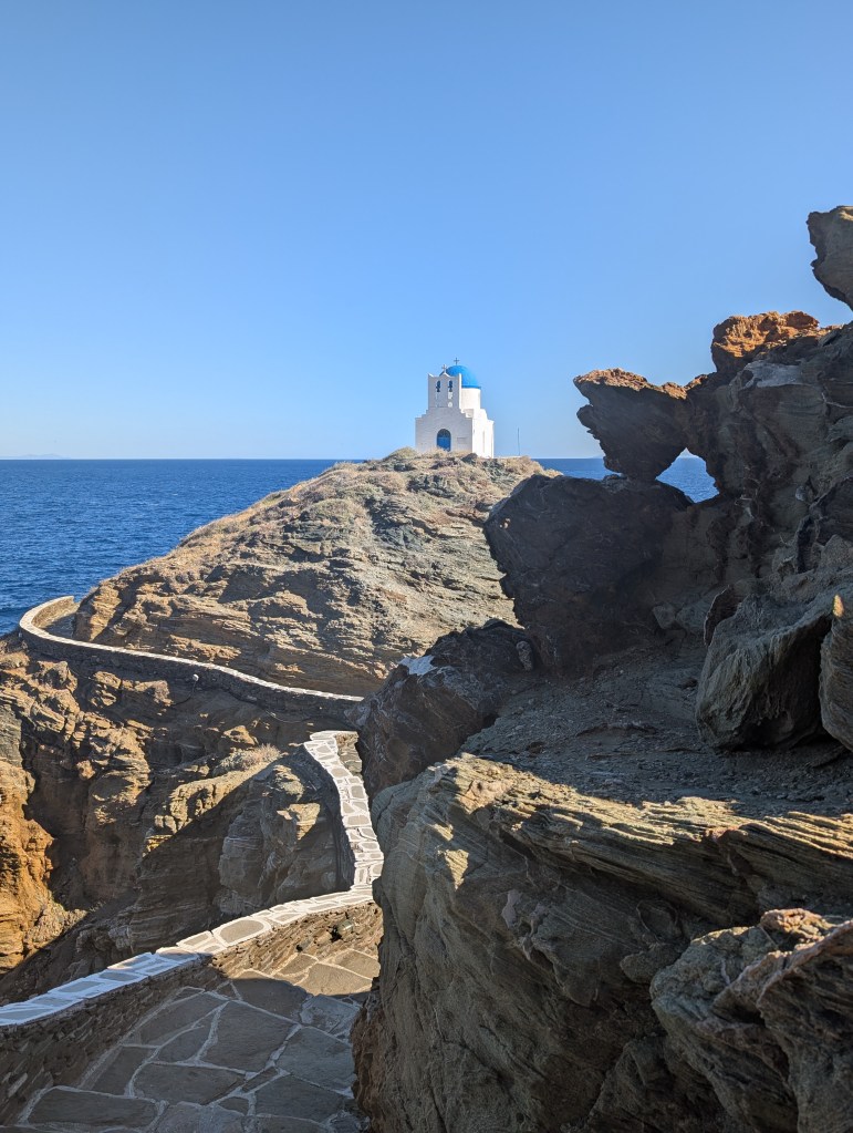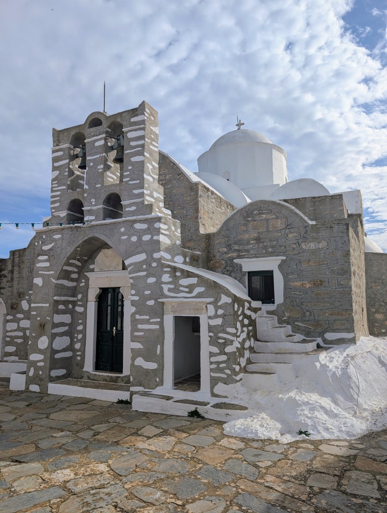 Kastro is perched atop a hill overlooking the Aegean Sea and the picturesque Church of the Eptamartyres (the Seven Witnesses). The winding path down to the church might seem daunting, but is hard to resist as it offers varying vistas of the church, sea and surrounding islands.