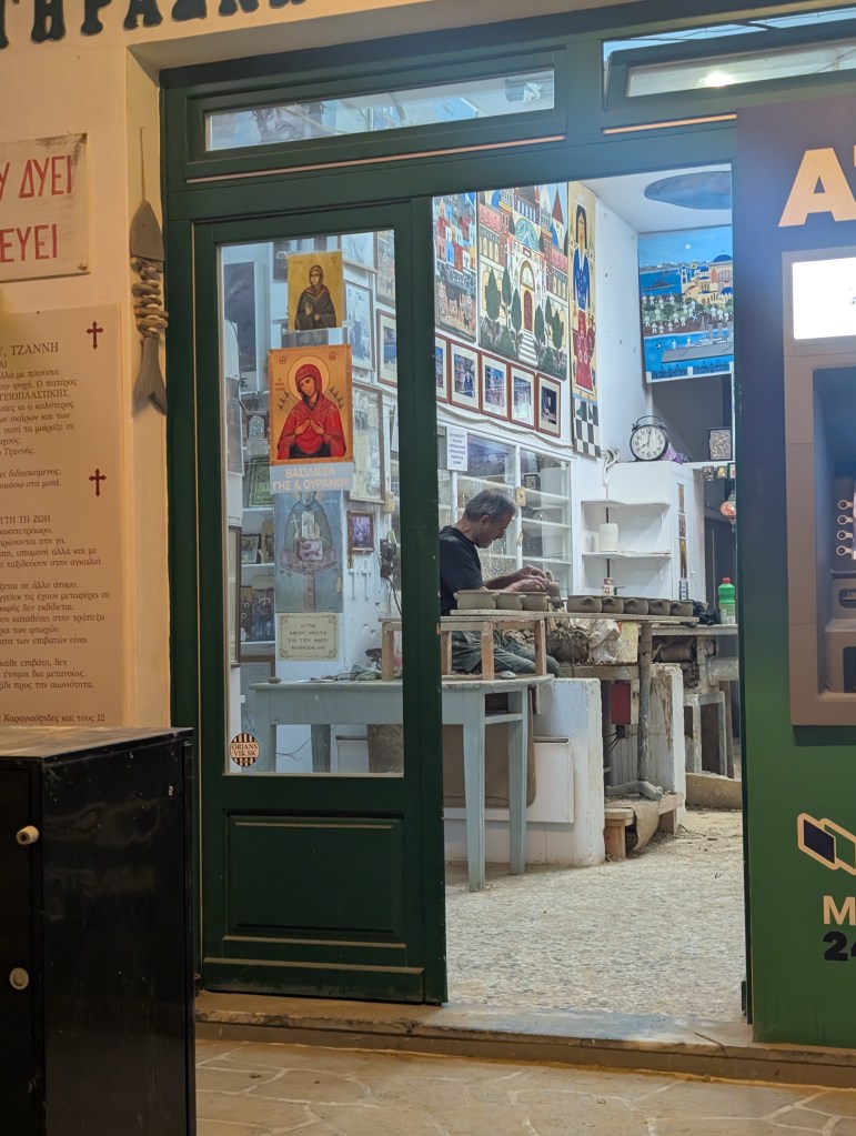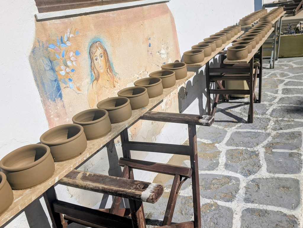 Because of its refractory clay deposits on the island and mild climate, Sifnos is unique in its history of pottery. As mentioned earlier, clay pots and lanterns adorn many of the buildings around the island; additionally, the clay pots are part of the culinary heritage of the island. Two of their signature dishes: mastelo (lamb or goat with dill and red wine) and revitha (chickpea soup) utilize the clay pots as cooking vessels. Both of these dishes were some of the best food I had during my travels.