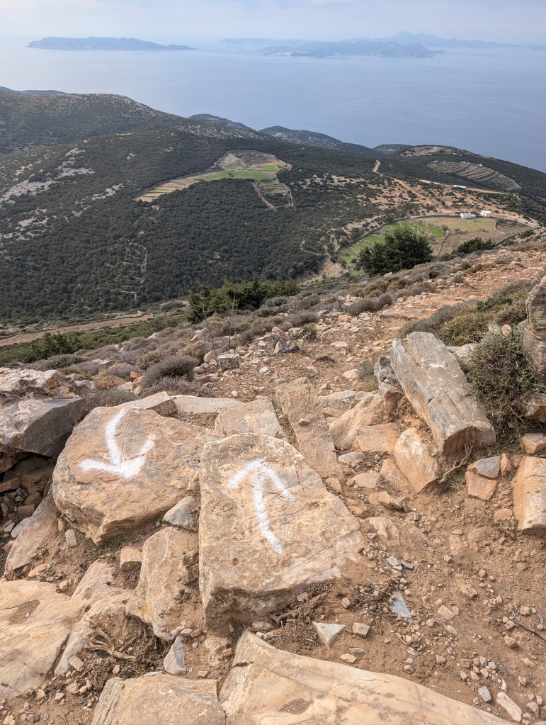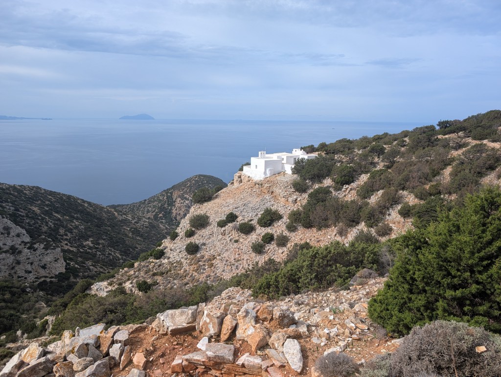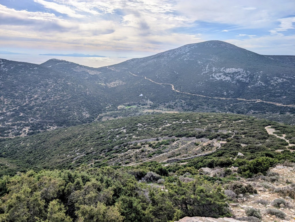 My second hiking day started from Apollonia and finished back in my homebase of Kamares following Trail 6: Sifnos Insiders. This time I headed to the mountains with no towns in sight. I decided to add in a hike up to the highest point on the island (700 meters) where the 12th century The Monastery of Profitis Elias Apsilou and small Agios Elisaiou chapel look out over the whole island. The hike up was one of the easier parts of my day as the path was paved with marble stones and the trail was easy to follow.