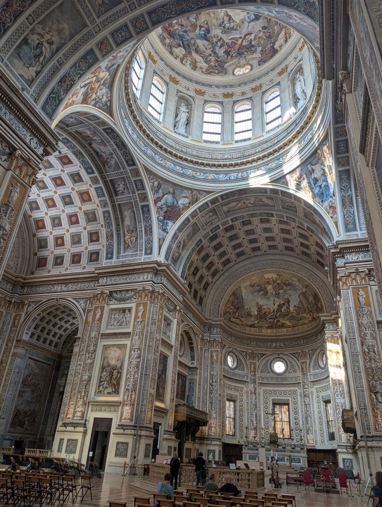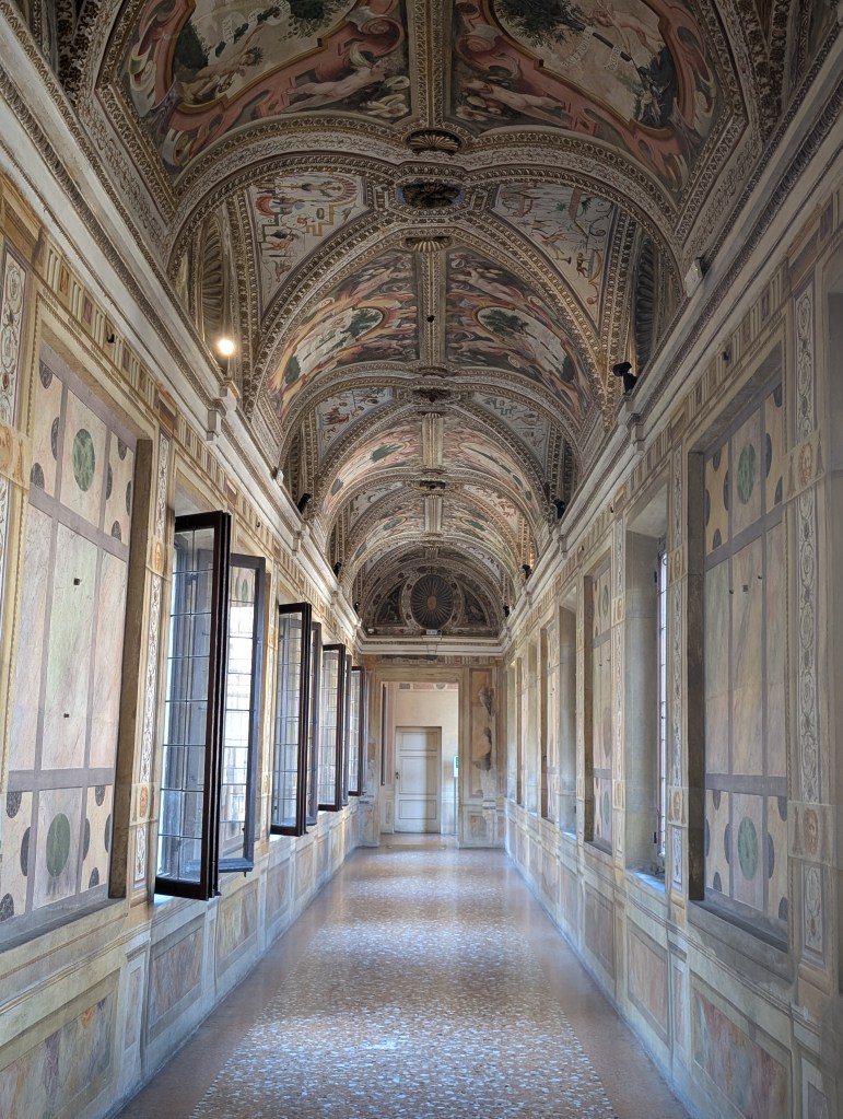 Their main residence, the Ducale Palace looks unassuming from the outside, but the maze of over a 1000 rooms and courtyards are filled with beautiful ceiling frescos, wall tapestries, and grand rooms. Since the Gonzaga family sold off all of their furnishings as they fell into ruin, the rooms are empty, but the frescoed ceiling and architectural elements of the palace are beautiful on their own.