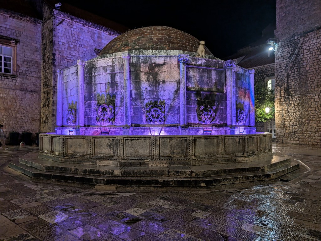 Near the main entrance to the old city, Pile Gate, the large octagonal Onofrios fountain stands with sixteen faces. This was built as the main water source for the city in 1438 and still provides drinkable water today.