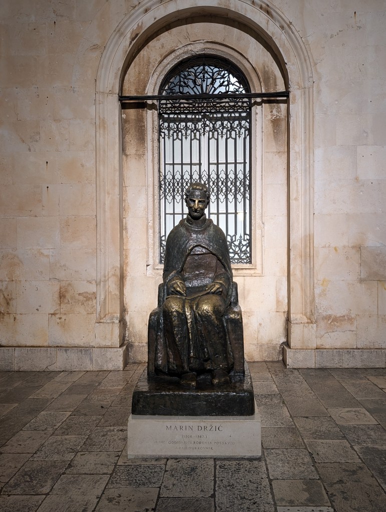 The city also honors its cultural legacy through the statue of Croatia’s Shakespeare, Marinin Dzric, outside of the Rector’s Palace and their national poet, Ivan Gundulić, in the market square.