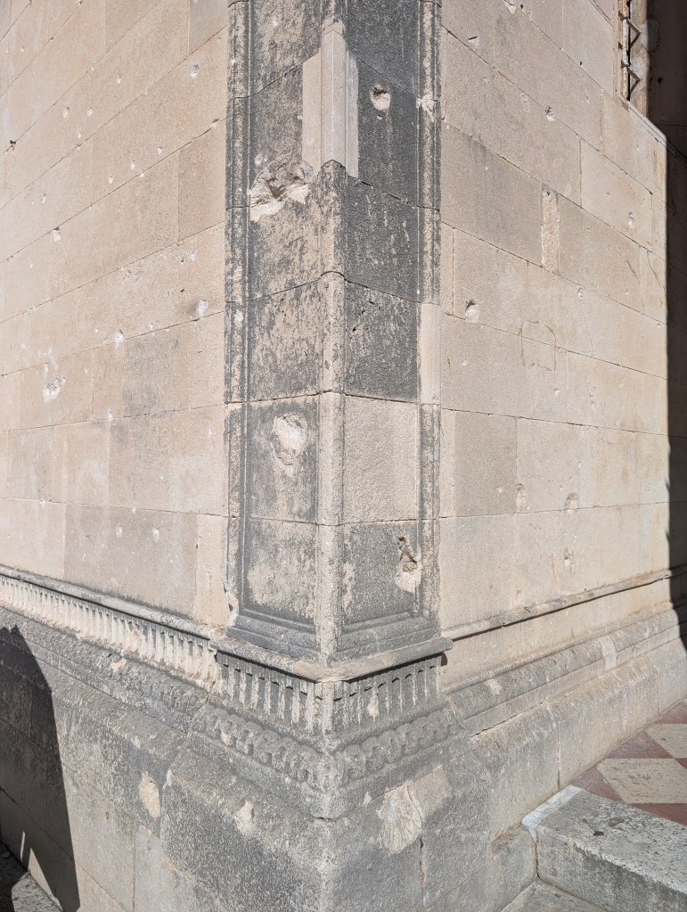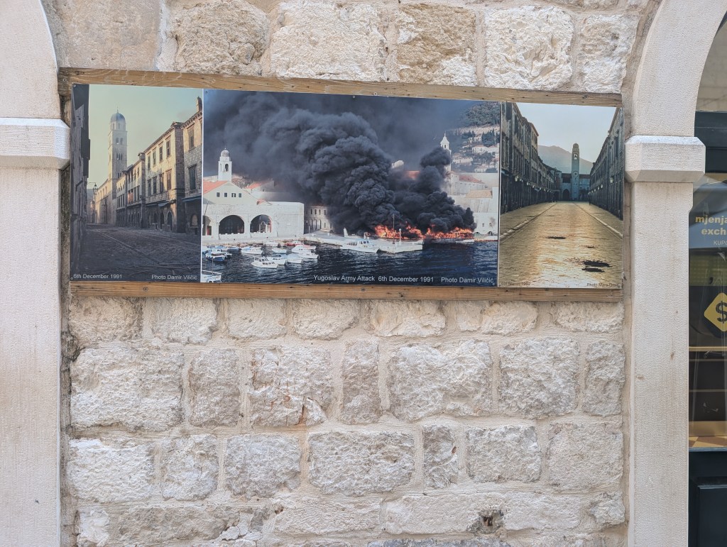 In 1991, Dubrovnik fought for their independence from the former communist Yugoslavia. The Yugoslav army’s attack damaged 60% of the city’s architecture. While the city has worked hard to rebuild and heal, vestiges of the bombings are present throughout the city. From one local’s photographs and account on the side of his home to shrapnel holes on the side of the Church of St. Saviour, ruined courtyards on the outskirts of the old city, and a photography exhibit within the Rector’s Palace, the city has healed but hasn’t forgotten.