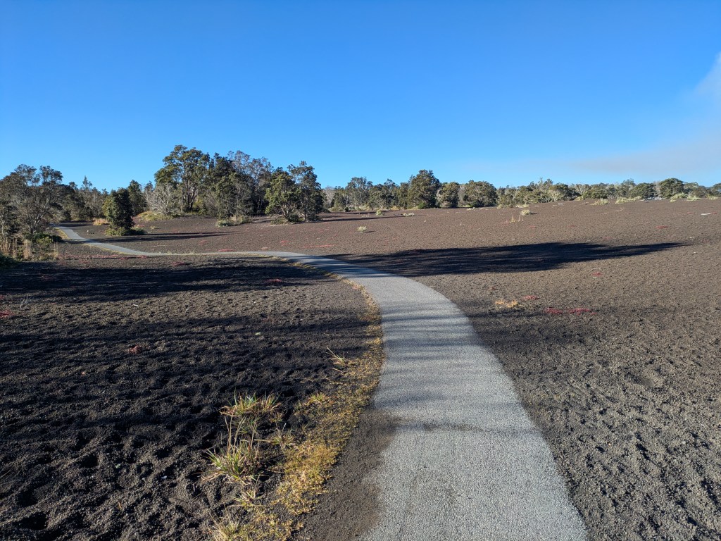 On my first day in the park, I spent the day exploring shorter hikes. I started with the popular Nāhuku Lava Tube. The cave was formed when the molten lava stopped and cooled. While most lava tubes will have lava drippings from the ceiling, they have all been removed from this cave. The cave is lit from 8am to 8pm and is an easy 0.5 mile loop walk from the parking lot.