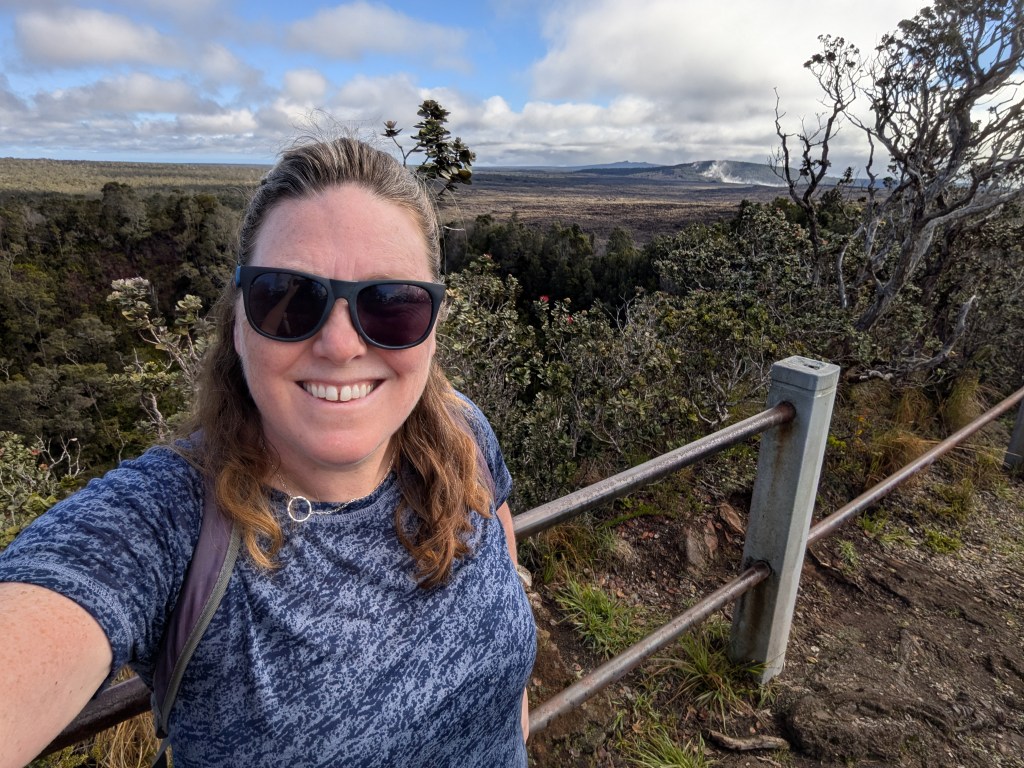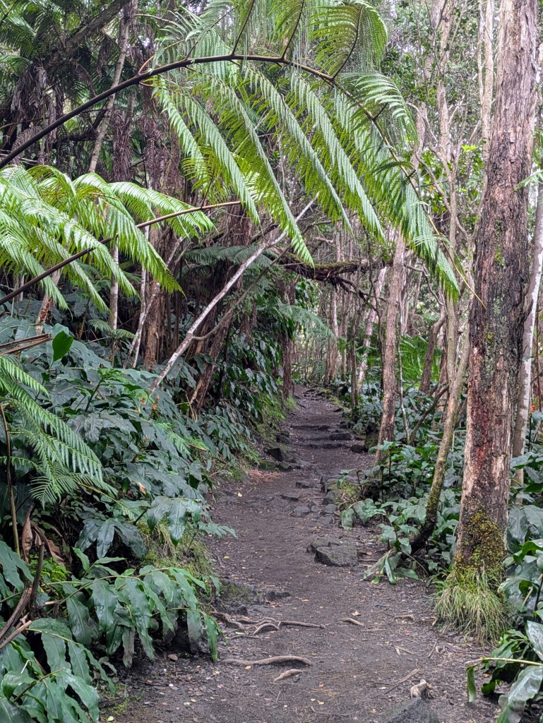 The next morning, I walked the Kilauea Iki Crater Walk. I parked at the Kilauea Iki overlook parking lot and walked the 4 mile loop counterclockwise. This allowed me to walk down the steep stairs and up the shaded switchbacks at the end.
