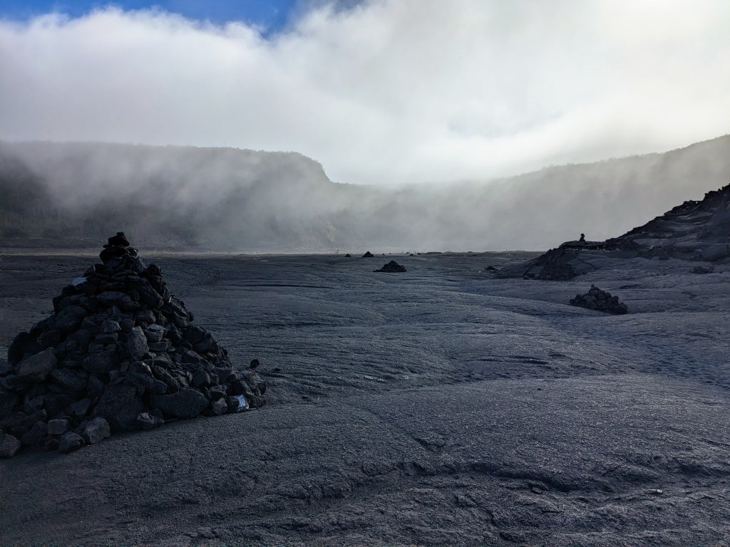 Just like the rest of the Big Island, the weather shifts from place to place; during my walk it was misting on one half of the crater, clear and sunny on the other side. The mist added to the mystical experience of the hike.