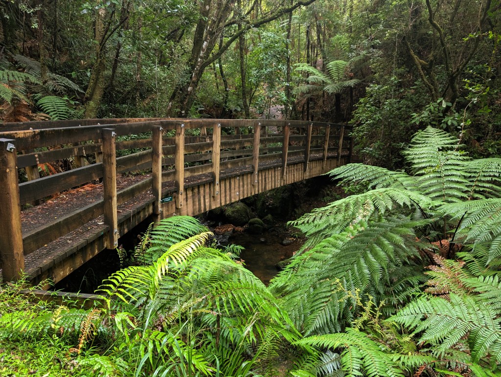 To burn off some of the breakfast calories, I hiked the quick Waiomu Kauri Grove Track. The 3.4 mile walk to the Kauri Grove was a great introduction to the local bush walks in the area. The lush trees also helped shield me from the rain and wind of the day. I was serenaded by the cicadas and rain as I made my way along a small stream and up through the kauri forest to the overlook at the Tapu summit.