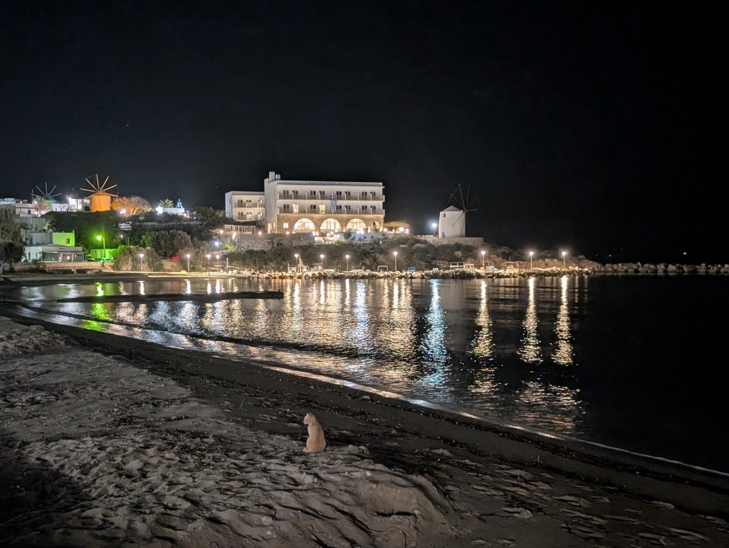 My host had mentioned that her favorite restaurants were in Aliki, so after the sun set, I ended my day with a nice fresh seafood dinner at one of the harborside tavernas. While it was dark, I could see that Aliki also has a small beach that you could enjoy watching the boats come in and out of the harbor from.