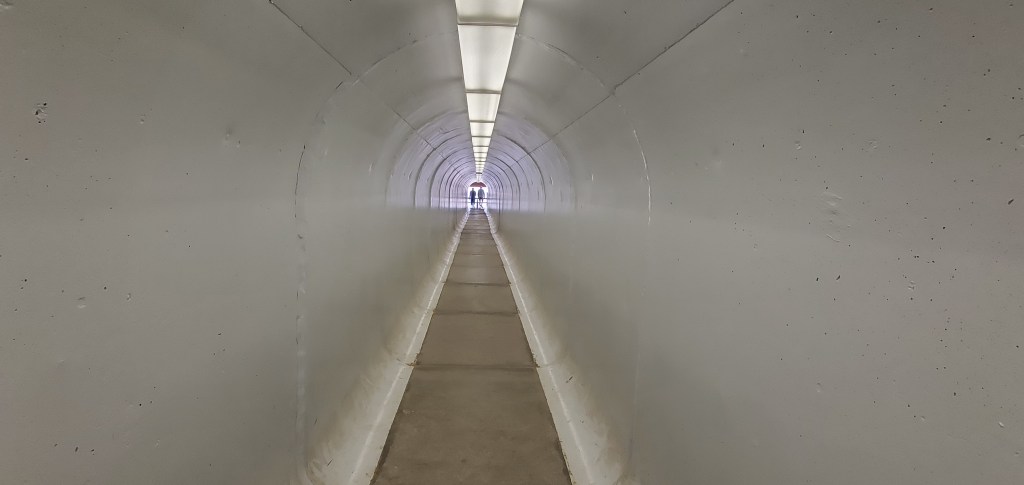 The Berkeley Pit produced more than 290 million tons of copper before shutting down in the early 1980s. Visitors walk through a long white tunnel before the space opens up to a viewing platform. At 7,000 feet long, 5,600 feet wide, and 1,600 feet deep, the pit takes up the whole panorama. The contrast between the confines of the long white tunnel and vast blue green waters of the pit provide a surprise contrast. Today, PitWatch monitors the water levels and toxic impact of the pit to ensure that the contaminated water doesn’t impact the environment or people in the area.